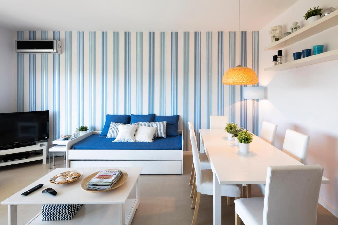 Boasting a DVD player, the spacious apartment has a fully equipped kitchen with a dishwasher, an oven and a microwave, a living room with a seating area and a dining area, 2 bedrooms, and 1 bathroom with a walk-in shower and a bidet. The unit is air conditioned and is comprised of a balcony with an outdoor dining area as well as a flat-screen TV with satellite channels. For added privacy, the accommodation has a private entrance and soundproofing.