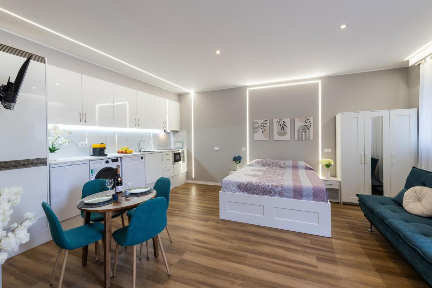 One-Bedroom Apartment. Boasting a private entrance, this apartment comes with 1 living room, 1 separate bedroom and 1 bathroom with a walk-in shower and a bath. Meals can be prepared in the well-fitted kitchen, which features a stovetop, a refrigerator, a dishwasher and a microwave. This apartment has a washing machine, a tea and coffee maker, flat-screen TV, as well as chocolate for guests. The unit has 3 beds.