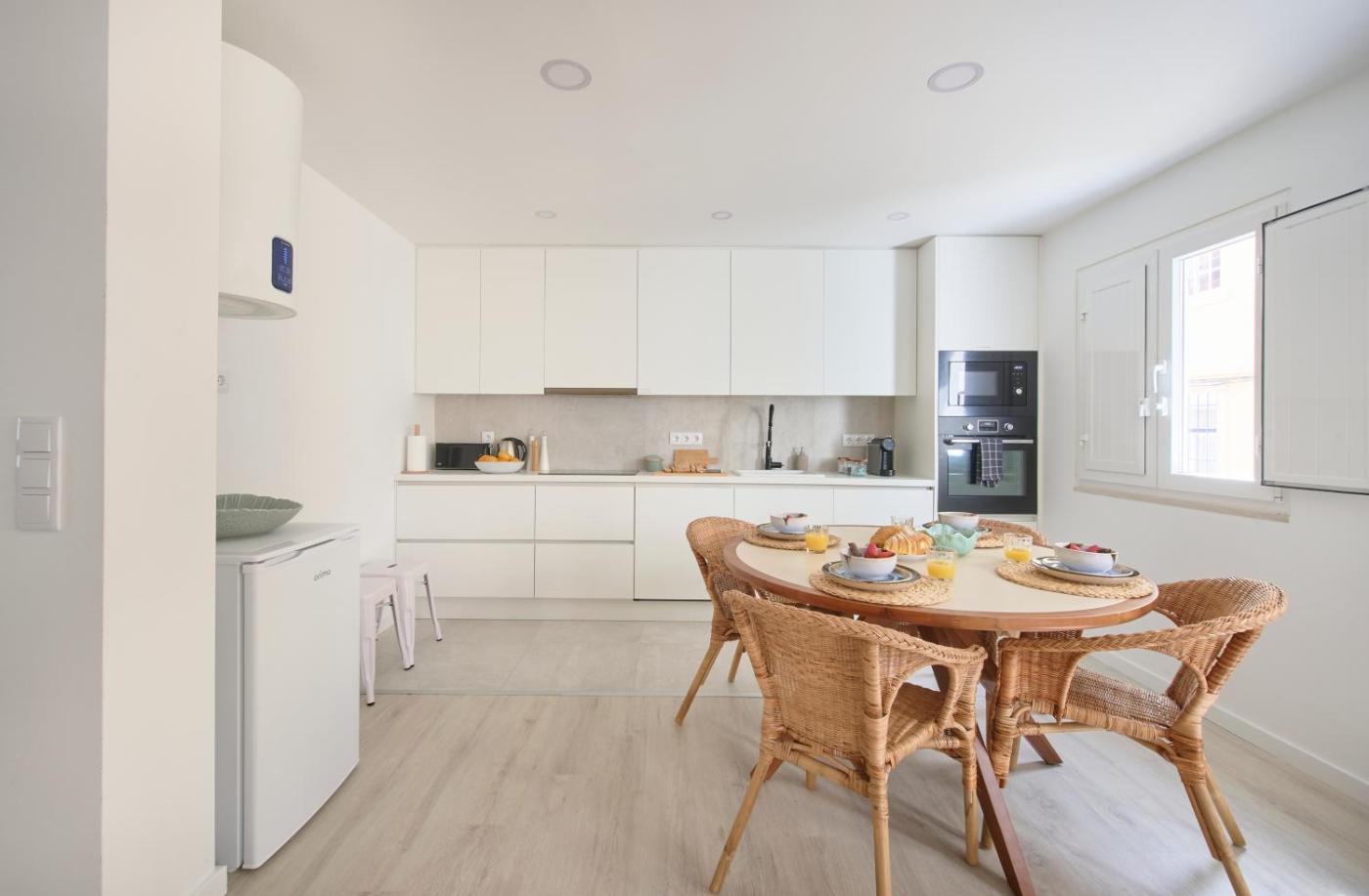 One-Bedroom Apartment. This air-conditioned apartment is comprised of 1 living room, 1 separate bedroom and 1 bathroom with a shower. The fully equipped kitchen features a stovetop, a dishwasher, kitchenware and an oven. The apartment offers a washing machine, a tea and coffee maker, a seating area, a dining area and a flat-screen TV. The unit offers 3 beds.
